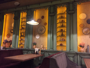 Ресторан «Бадриджани» сохранил в себе частичку солнечной Грузии. Интерьер напоминает об уютном домике в горах: на полках стоит глиняная посуда, стены украшены расписными тарелками, декоративной росписью, фотографиями, на полу – множество ковров. Создается ощущение, что вы приехали в гости к родственникам, а дружелюбный и гостеприимный персонал еще больше усиливают эти чувства.